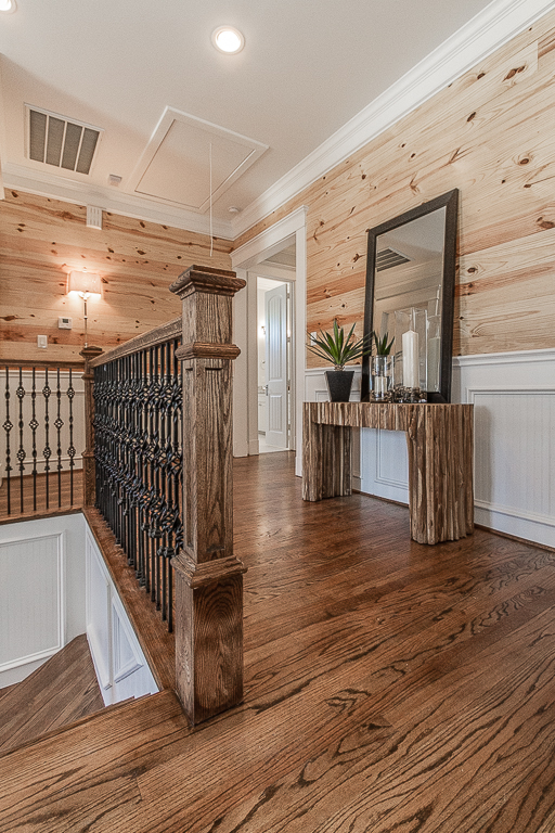 Two story craftsman style home. This jewel is located in a prime corner lot in the heart of Houston Heights, overlooking the Heights Hike & Bike Trail and Love Park. This magnificent home entertains the perfect floor plan with dramatic 12’ ceilings on the first level and 10’ on the second floor. Open concept floor plan will amaze the most discriminating buyer. Huge 24’ foyer will simply take your breath away! Custom craftsmanship features everywhere, from bottom to top built on site kitchen cabinetry, formal dining room, wrap around porch and back deck , master balcony with wood French doors, huge walk in master closet, beadboard applications, double crown moldings throughout, impressive hardwood floors.