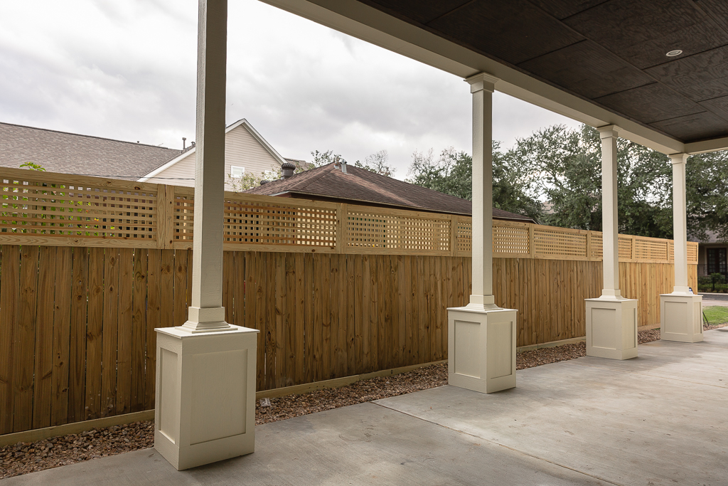 Generous porch to entertain friends. Enjoy outdoors living in the courtyard and the balcony, too!